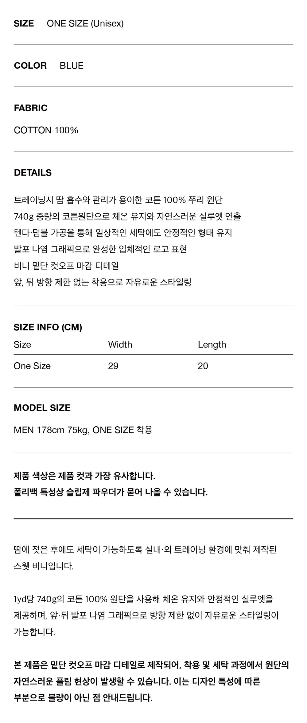 포즈넘버에잇 퍼프 프린트 스웻 비니 (블루)