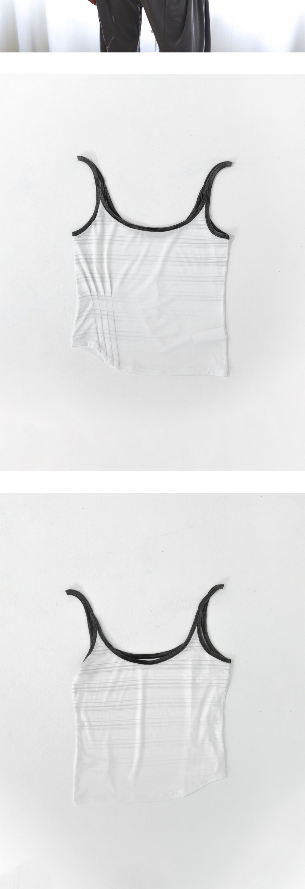 울리카 상투스 우먼 스트라이프 핀턱 슬리브리스 화이트입니다. - 슬림 핏 - 하단 비대칭 핀턱 디테일 - 배색 끈 - 빛바랜 스트라이프 패턴 * 모델 스펙: 166cm S 사이즈 착용
