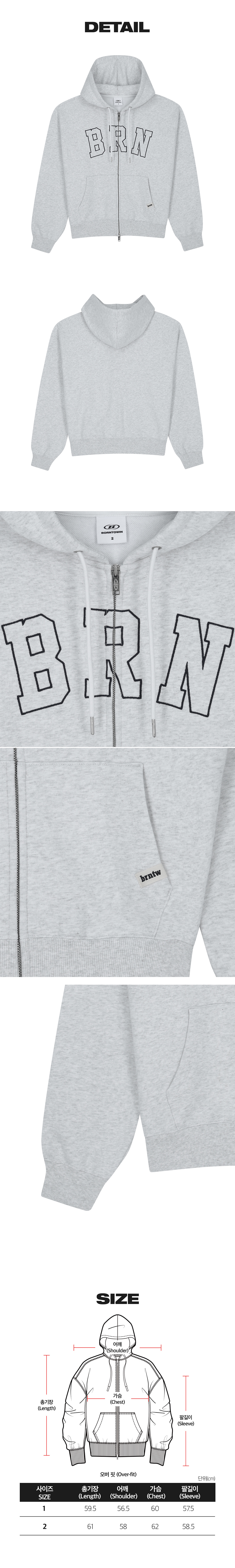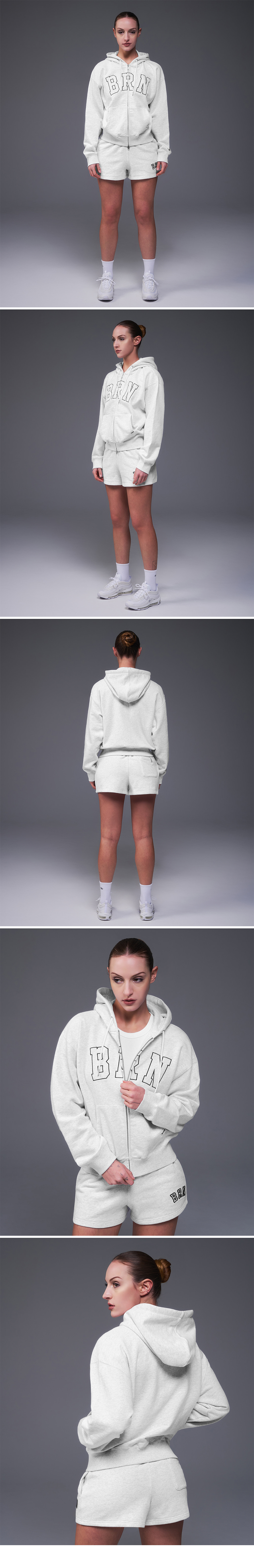 본투윈 우먼 BRN 릴렉스핏 후디 집업 화이트 멜란지