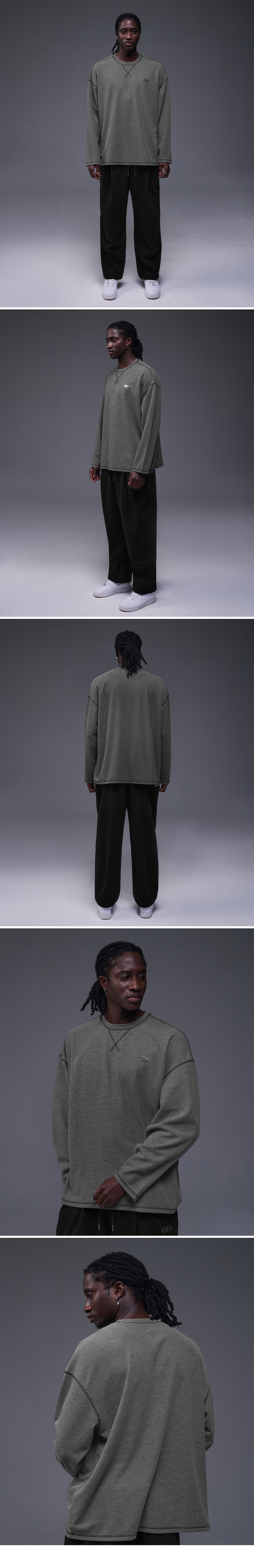 본투윈 B 펜던트 와플 롱슬리브 멜란지차콜