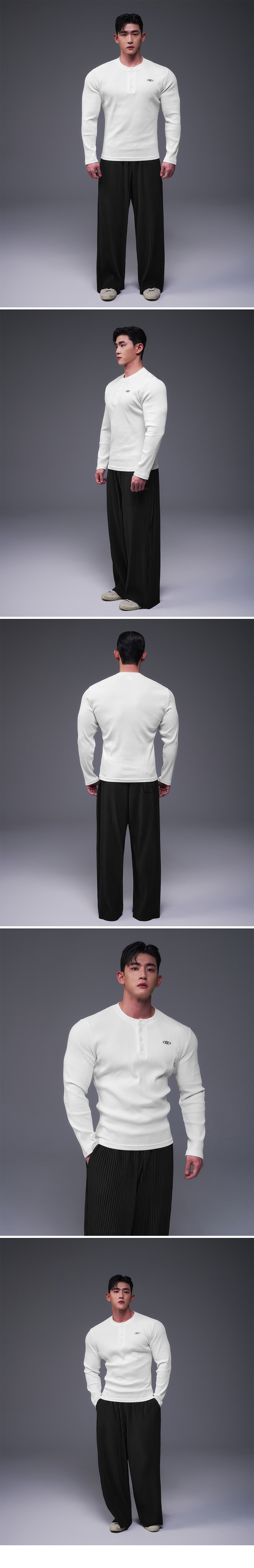 본투윈 B 펜던트 헨리넥 머슬핏 롱슬리브 화이트