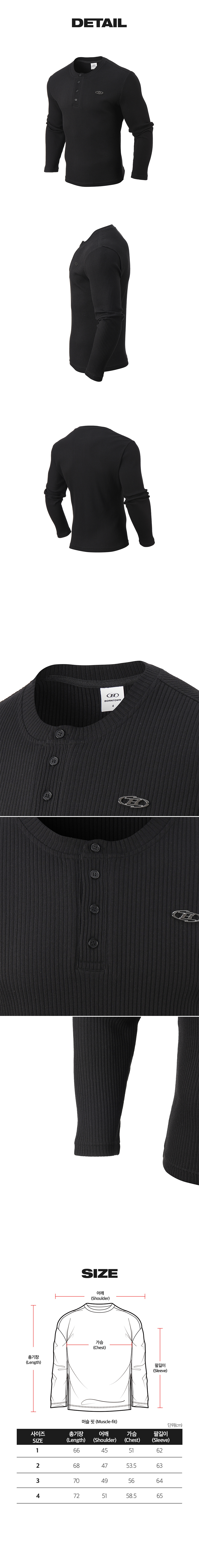 본투윈 B 펜던트 헨리넥 머슬핏 롱슬리브 블랙