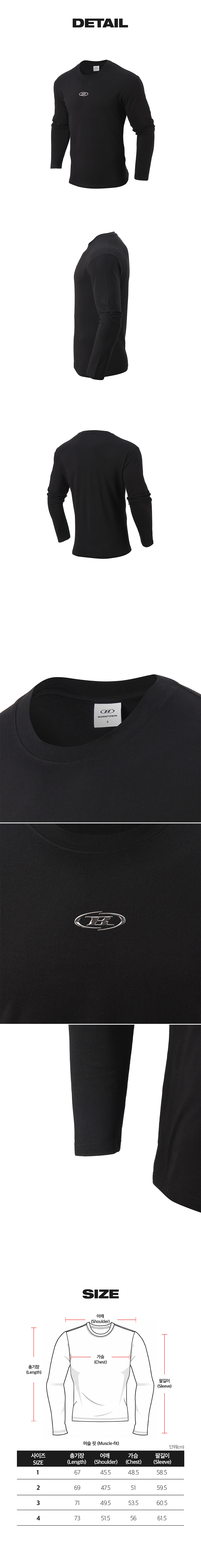 본투윈 실버 B 로고 머슬핏 롱슬리브 블랙