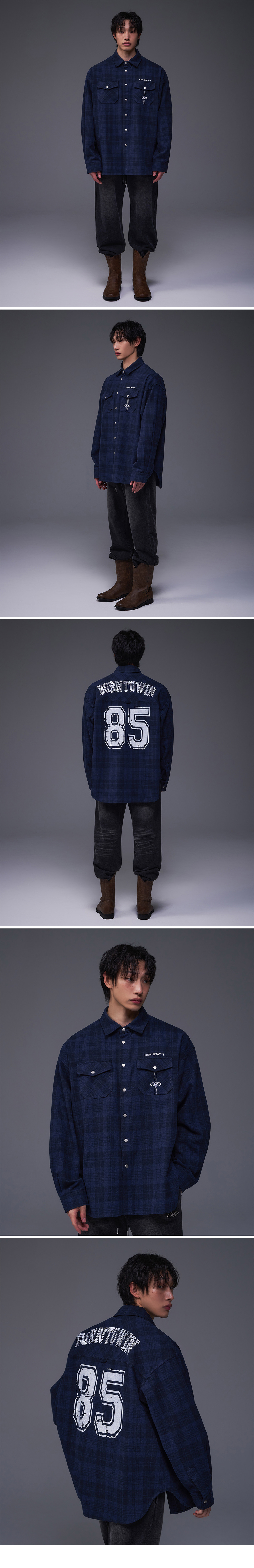 본투윈 85 플란넬 체크 셔츠 자켓 네이비