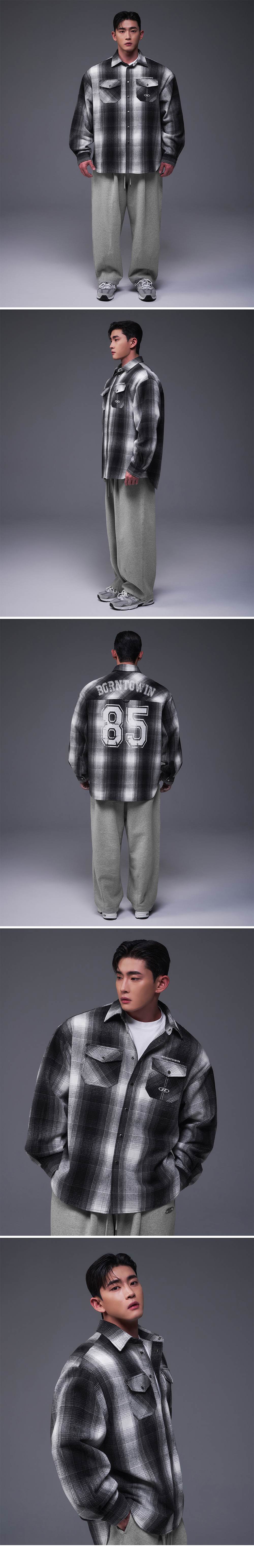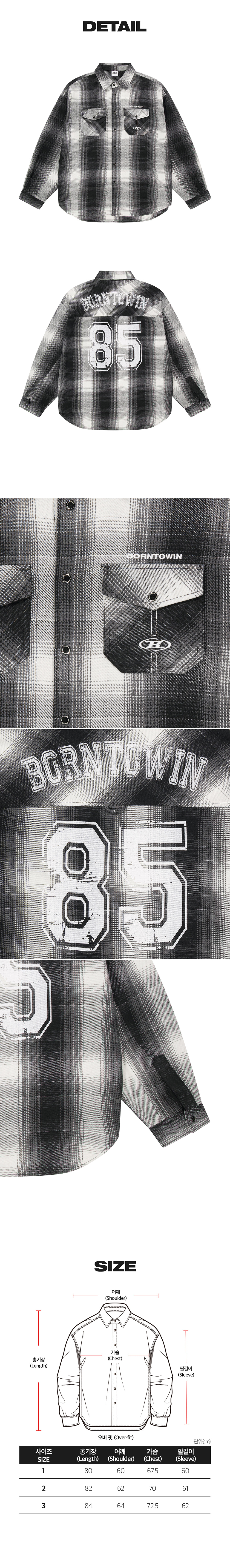 본투윈 85 플란넬 체크 셔츠 자켓 블랙