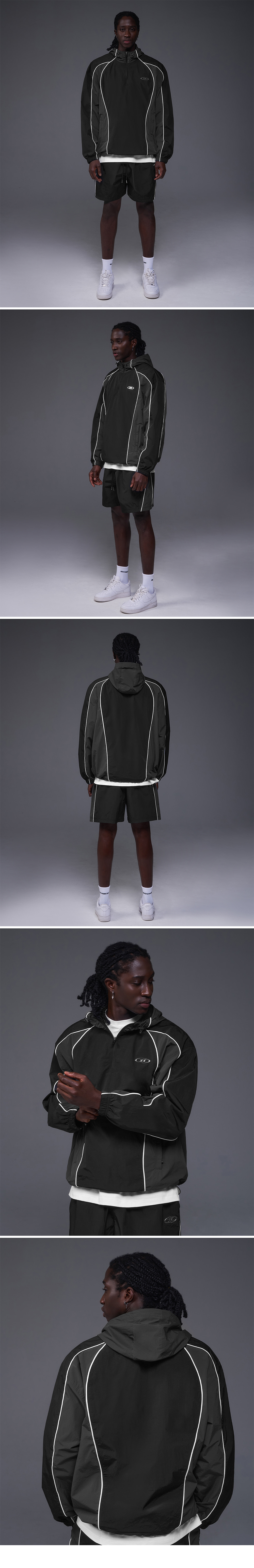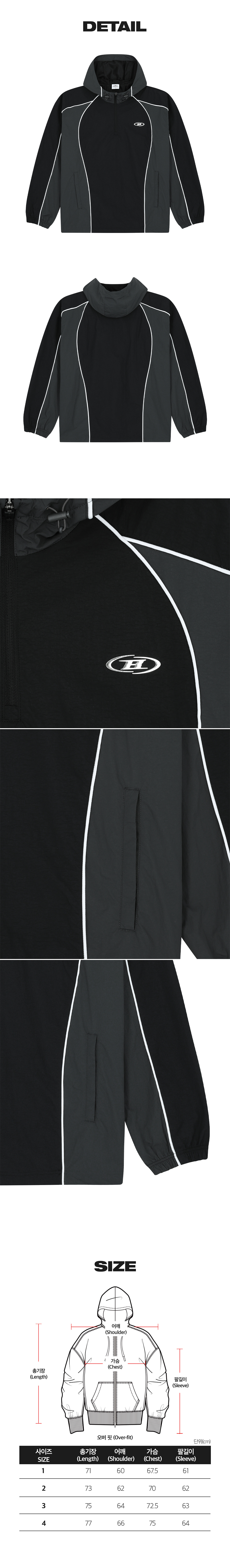 본투윈 나일론 블록 아노락 자켓 블랙