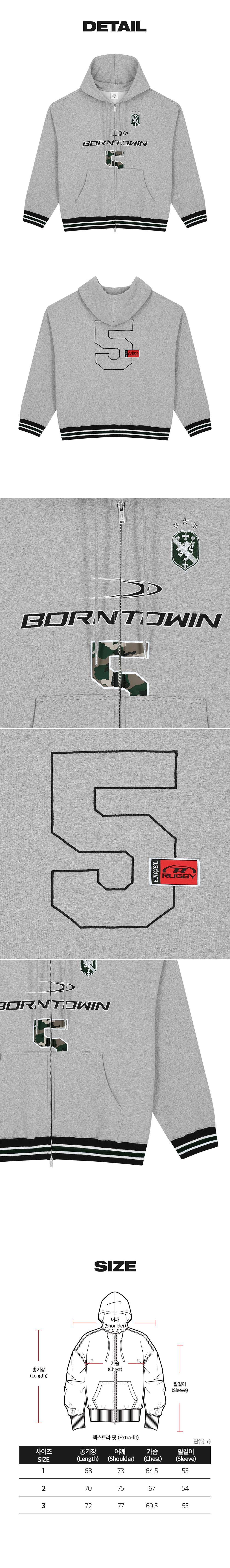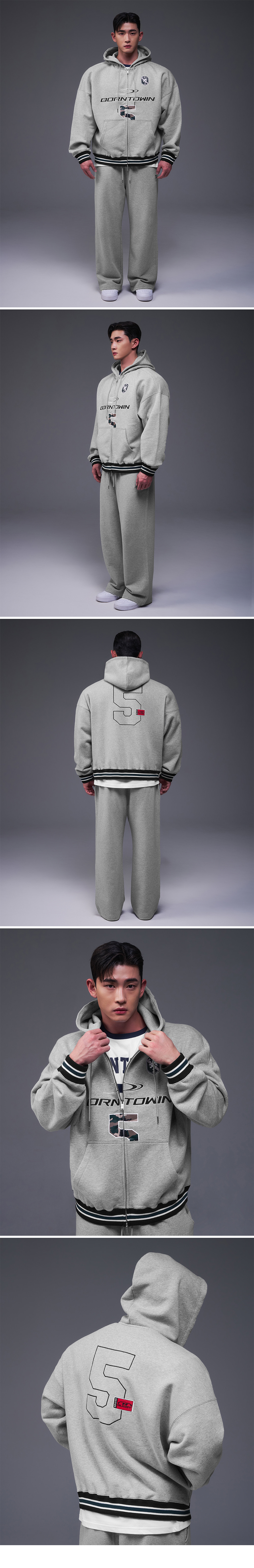 본투윈 넘버 5 럭비 후디 집업 멜란지그레이