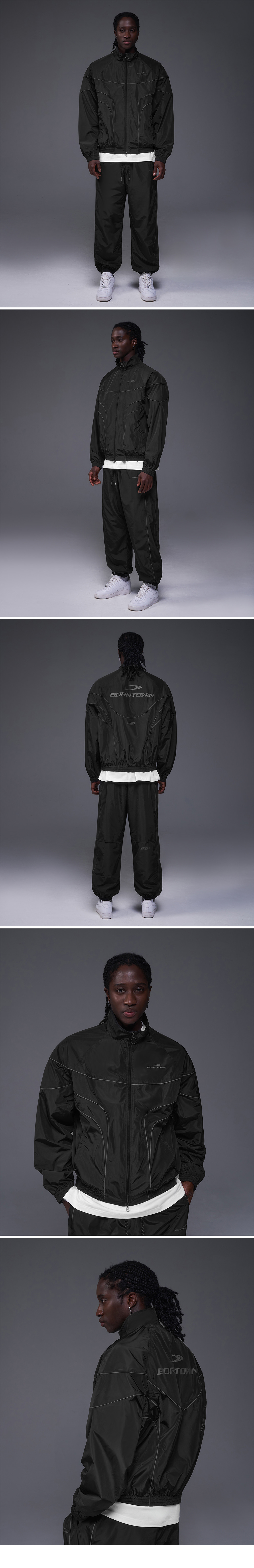본투윈 우븐 파이핑 트랙 자켓 블랙