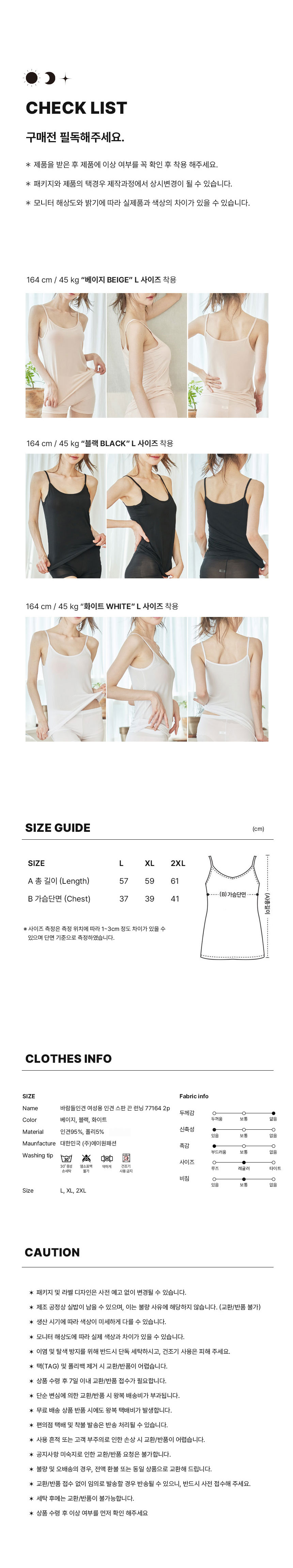 (W) 에이원 인견 스판 끈 런닝 164 2팩 베이지