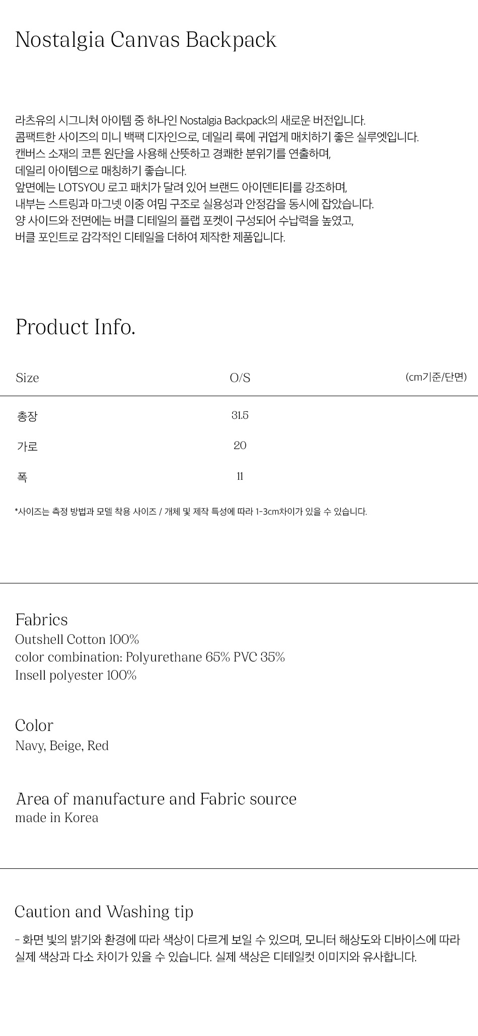 라츠유 노스탤지아 캔버스 백팩 레드