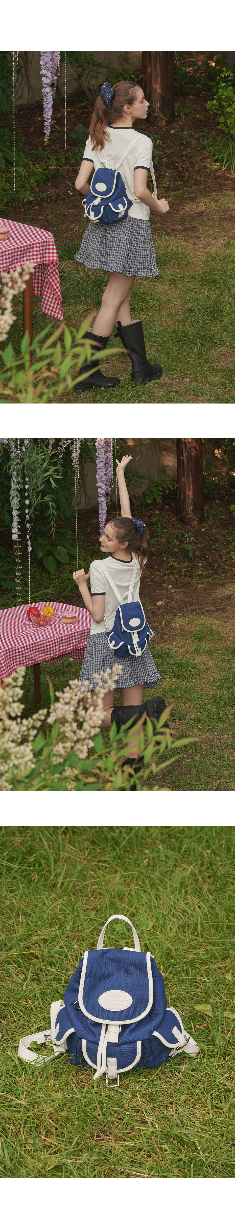 라츠유 노스탤지아 캔버스 백팩 네이비