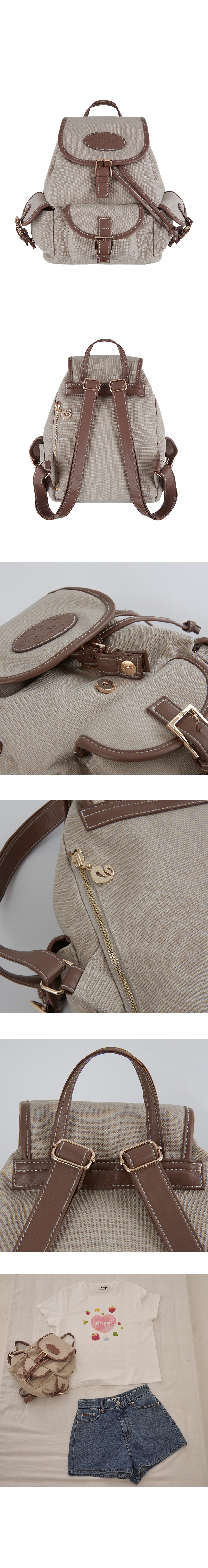 라츠유 노스탤지아 캔버스 백팩 베이지
