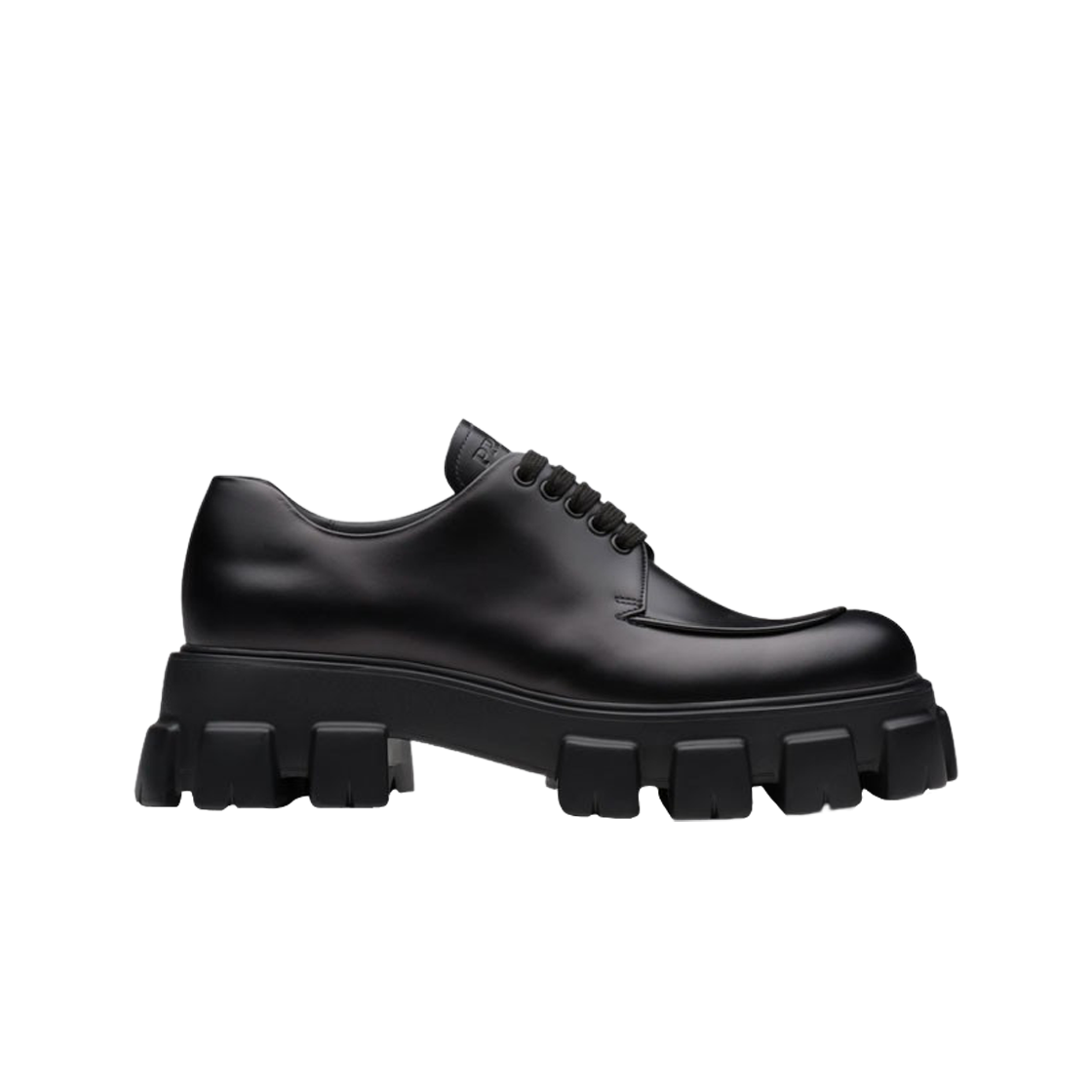 Prada Monolith Brushed Leather Lace-Up Shoes Black