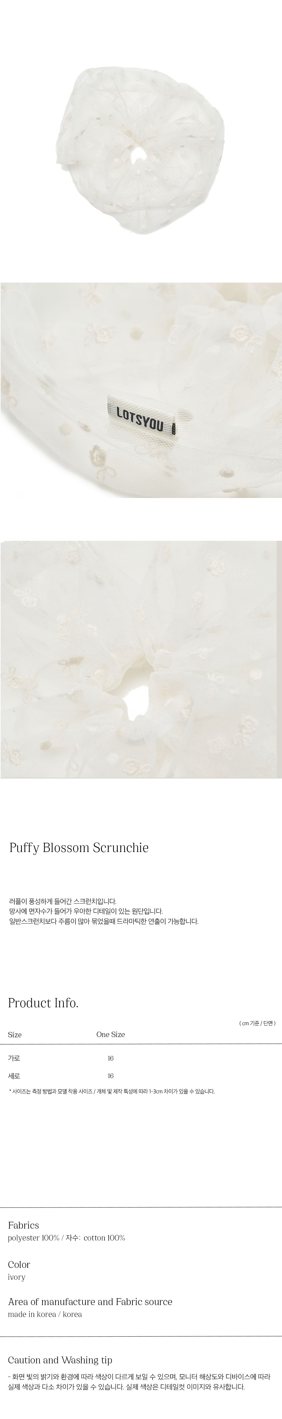 LOTS YOU Puffy Blossom Scrunchie Ivory
