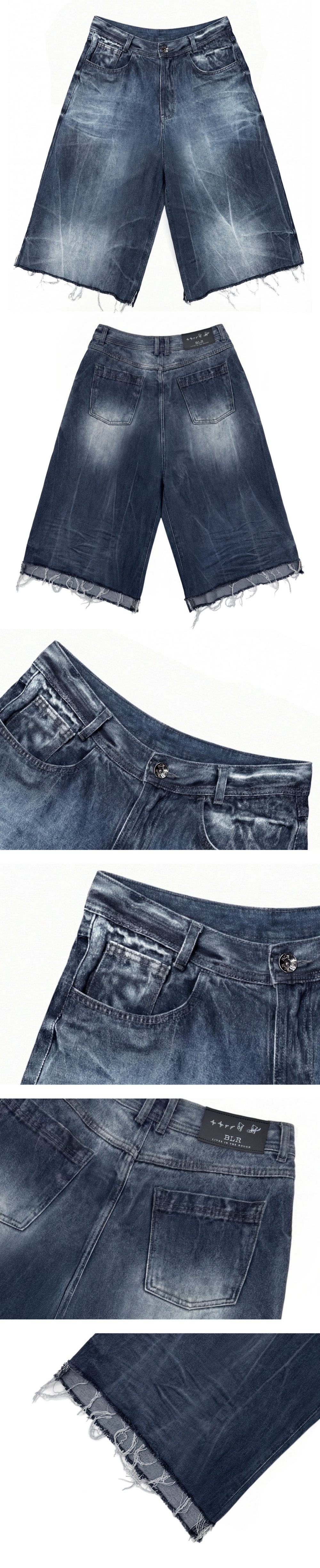 BLR Dirty Oil Washing Bermuda Denim Pants