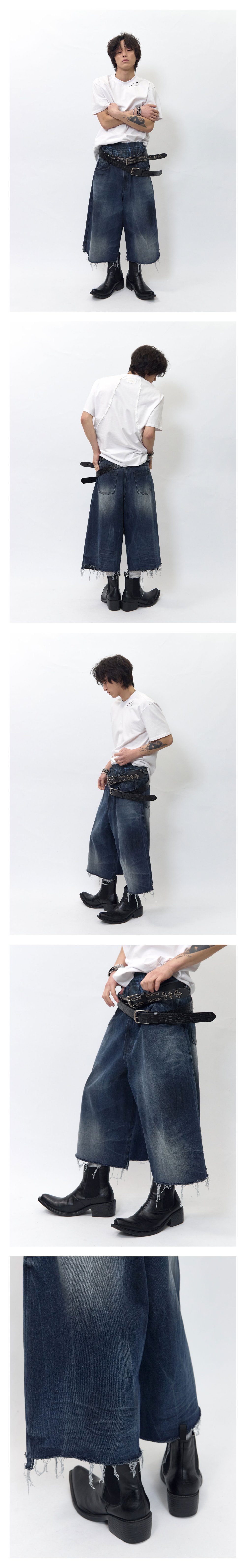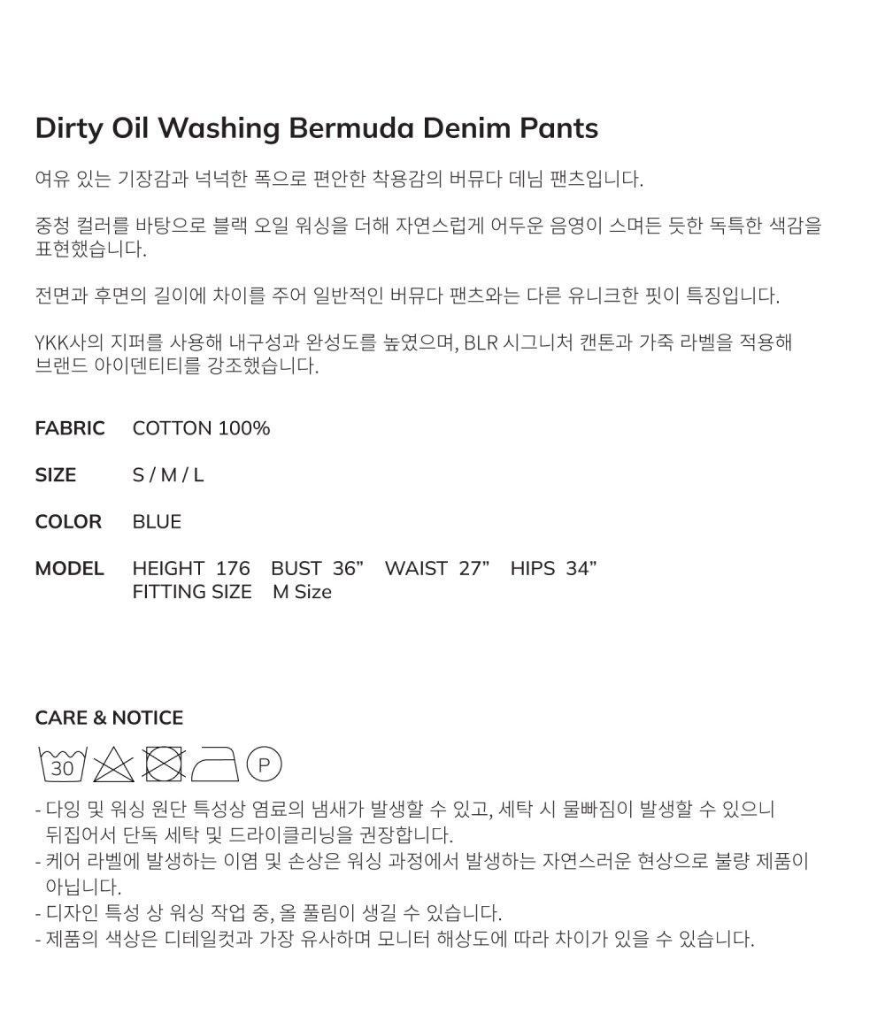 비엘알 더티 오일 워싱 버뮤다 데님 팬츠
