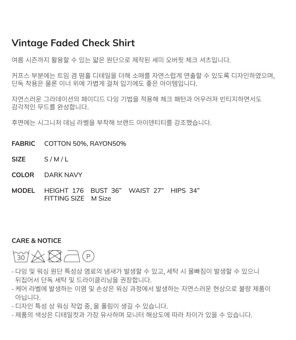 비엘알 빈티지 페이디드 체크 셔츠