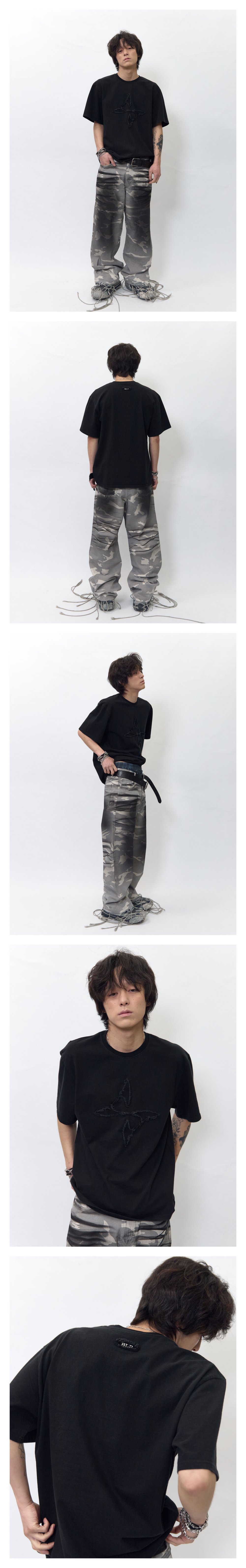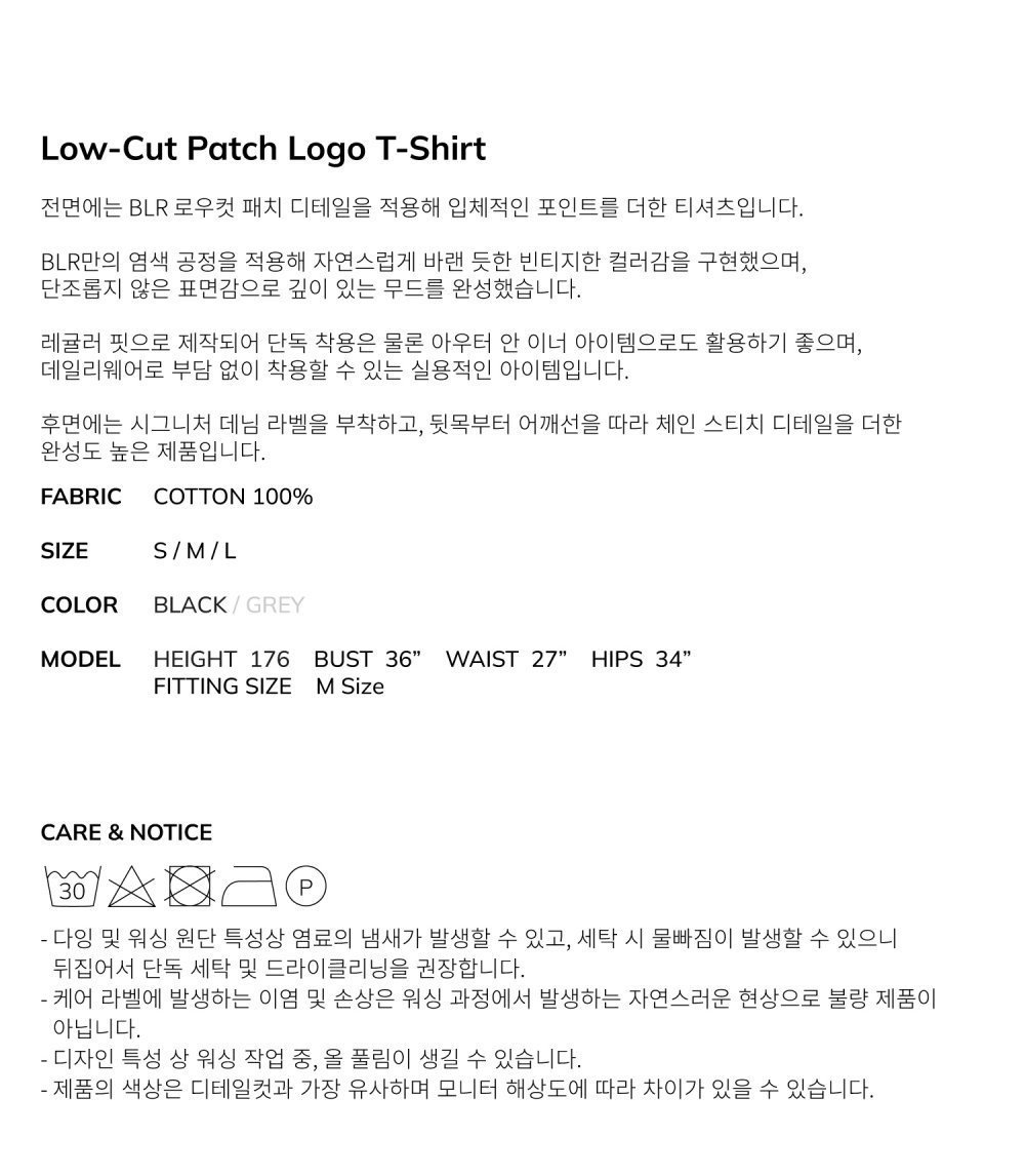 비엘알 로우 컷 패치 로고 티셔츠 블랙