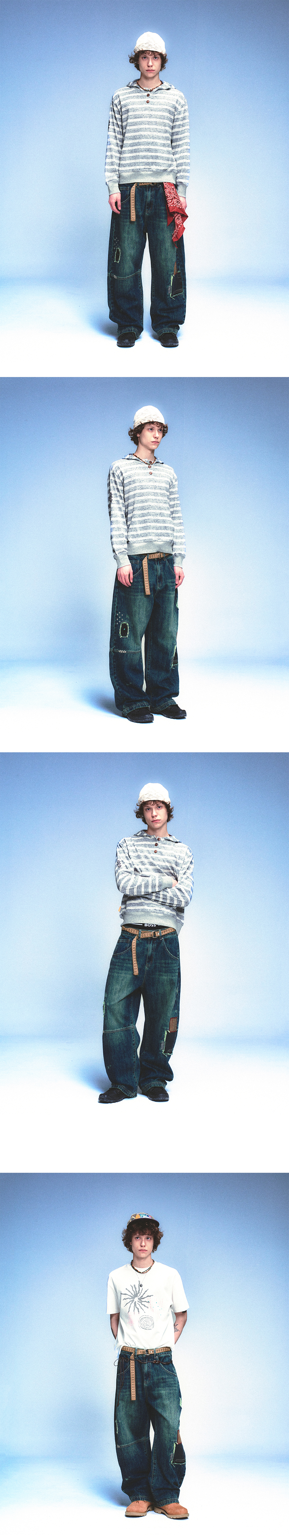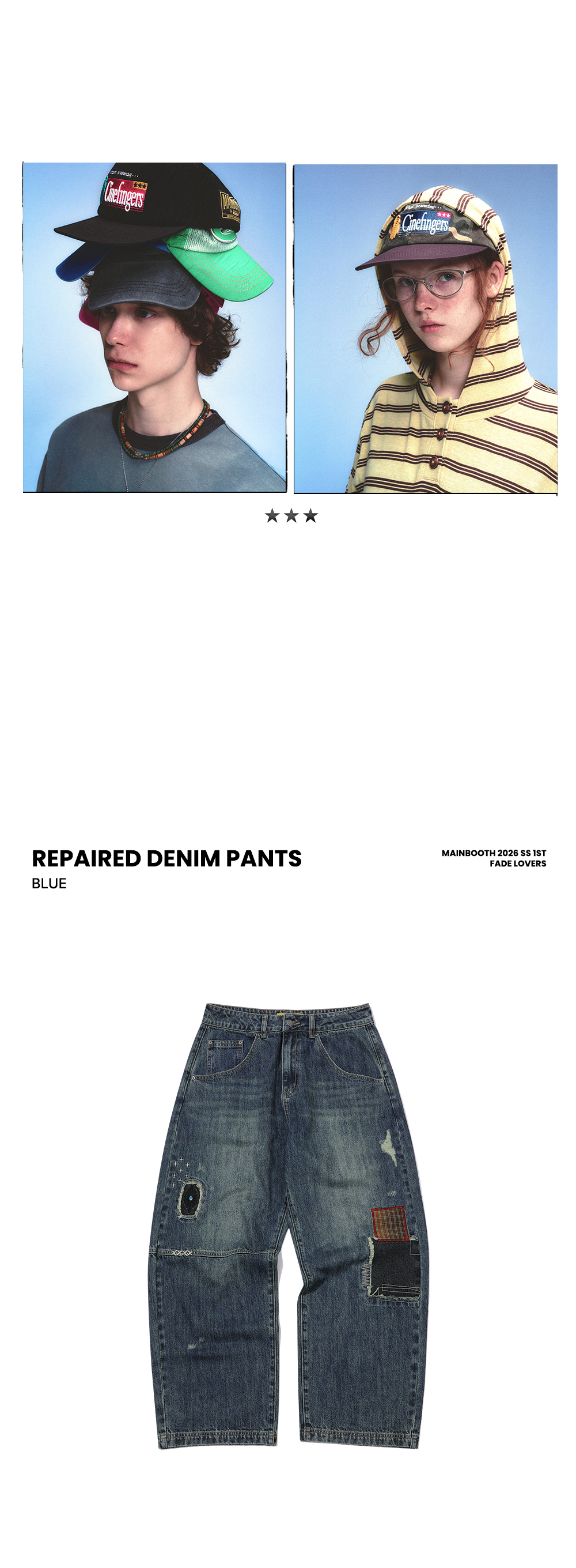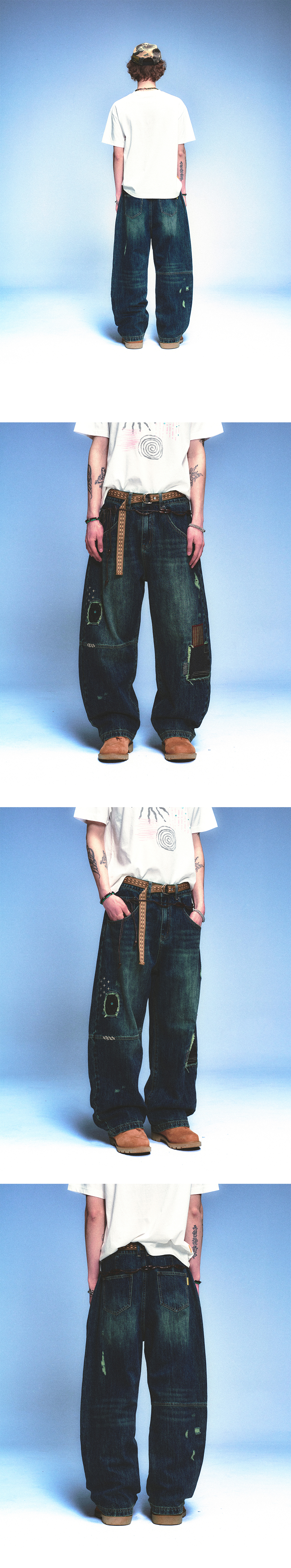메인부스 리페어드 데님 팬츠 블루