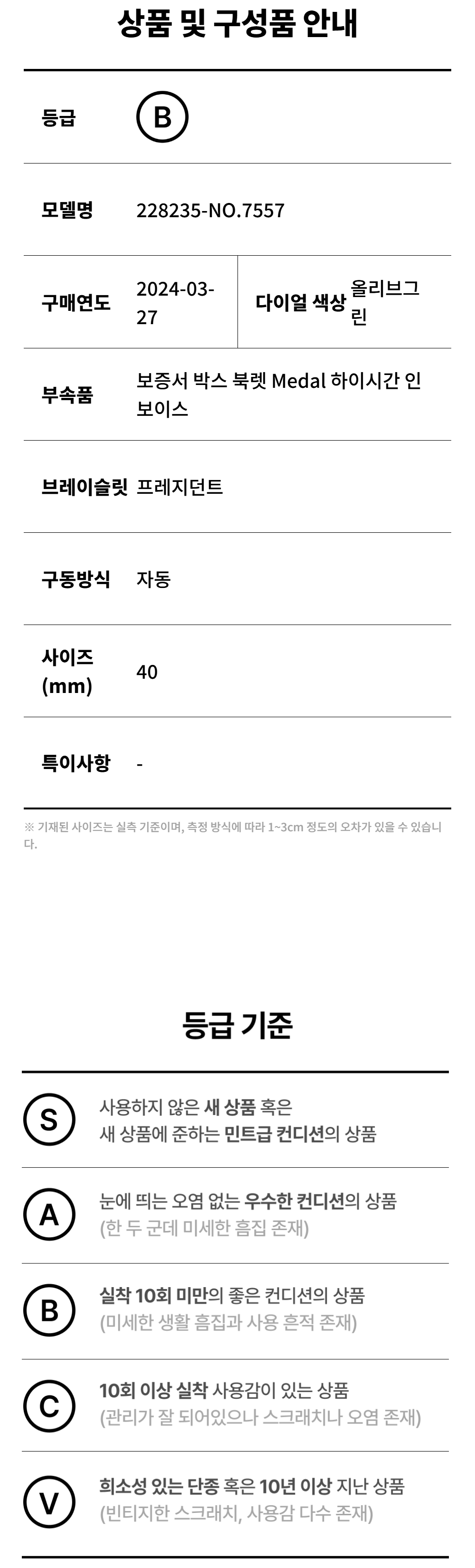롤렉스 데이데이트 40-228235 올리브그린 로마+바 프레지던트 NO.7557