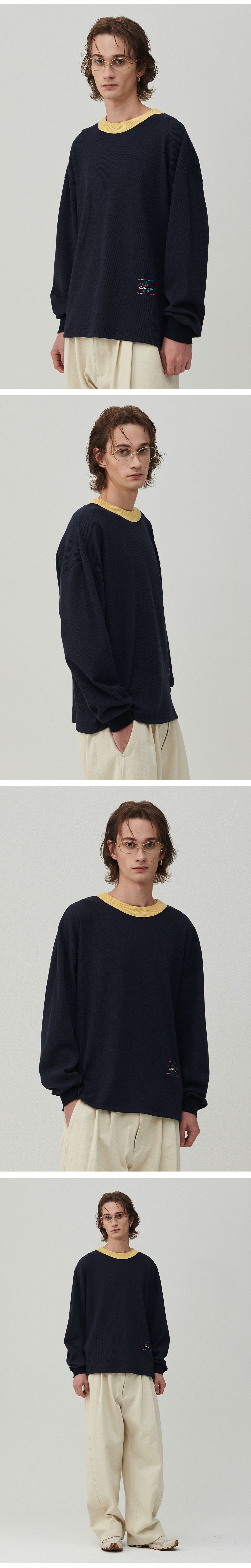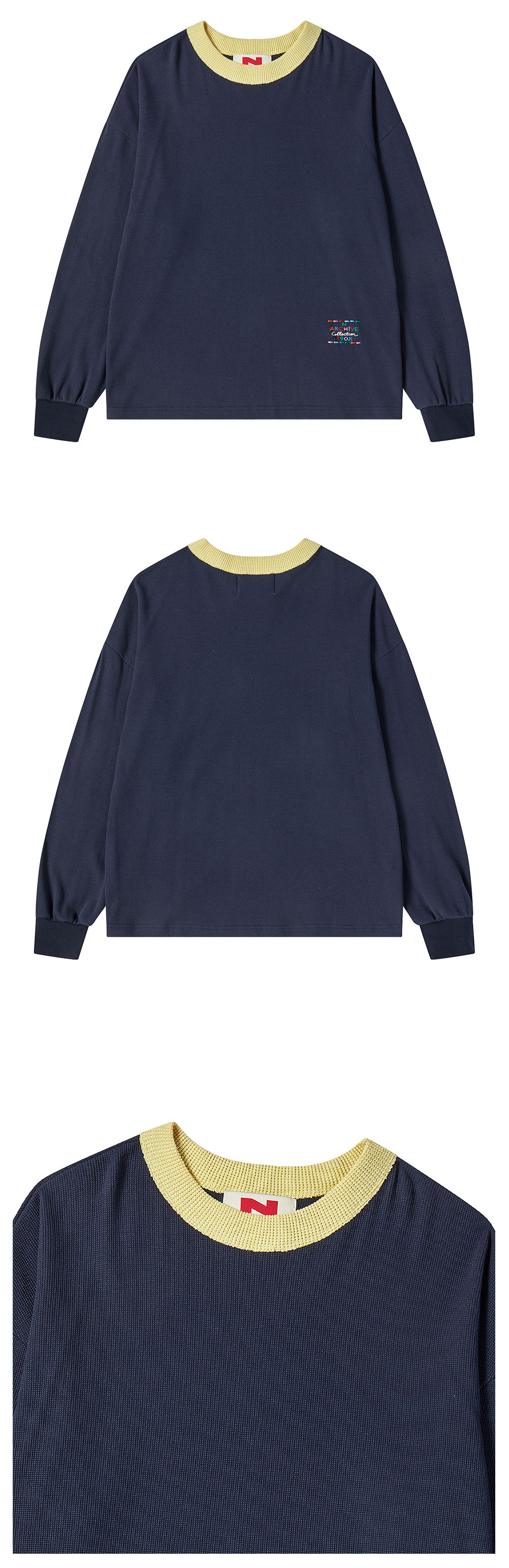 ㆍ현대미술에서 영감을 받아 제작된 립 배색 롱 슬리브로 감각적인 컬러 밸런스 완성 ㆍ입체적인 와플 조직 원단을 사용해 텍스처가 살아있는 유니크한 표면감 구현 ㆍ텐타 워싱 가공을 거쳐 세탁 후 수축과 틀어짐을 최소화해 안정적인 실루엣 유지 ㆍ와플 특유의 통기성과 가벼운 착용감으로 단독은 물론 레이어드용으로도 활용도 높은 아이템 ㆍ소매에 립 원단을 적용해 핏을 정돈해주며 편안한 착용감 제공 ㆍ밑단에는 핸드메이드 기법으로 완성한 컬러풀 자수를 더해 예술적인 포인트 강조 ㆍ유니섹스 제품으로 제작되었으며, 세미 오버핏으로 제작, 여성 고객님께는 M 사이즈 추천