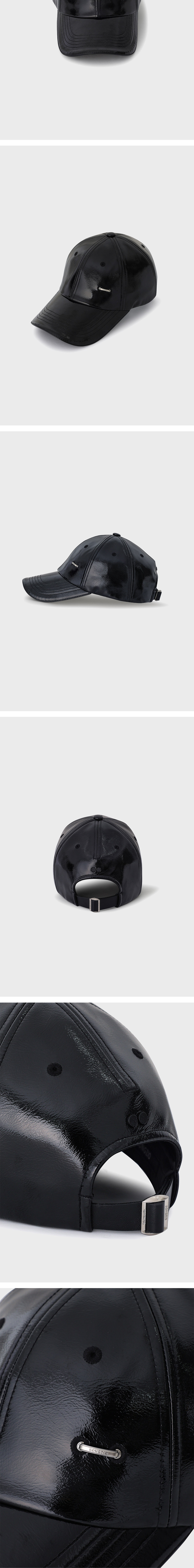 송지오 컬렉션 글로시 레더 볼캡 블랙