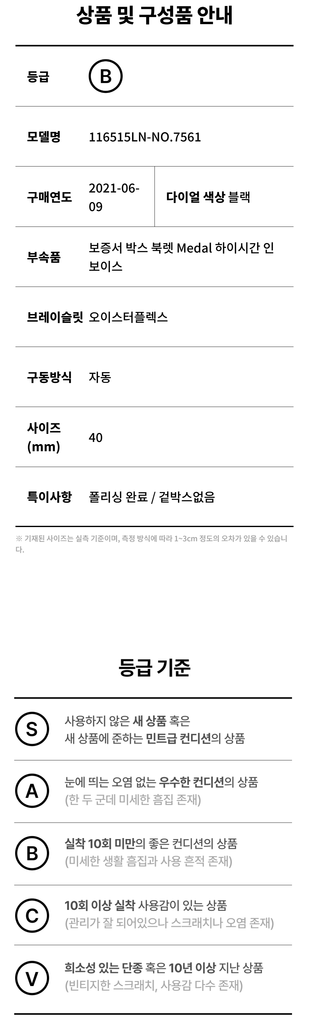 롤렉스 데이토나 40-116515LN 블랙 바 오이스터플렉스 NO.7561