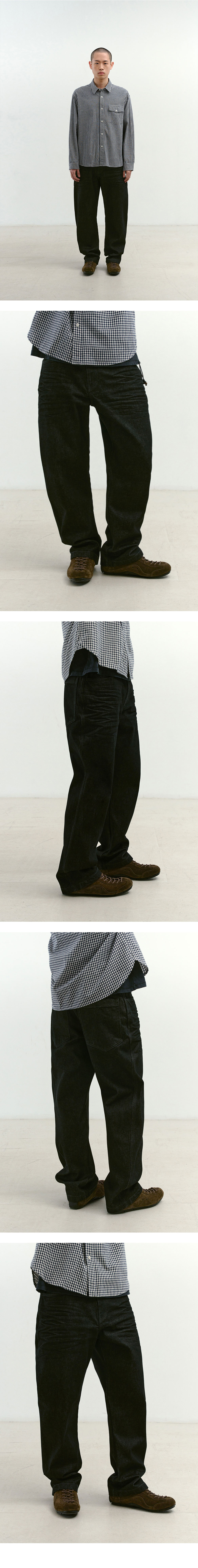 3D Fit Embossed Denim Pants (Black) 단단한 데님 원단에 유연처리 작업을 하여 형태가 또렷이 유지되는 팬츠입니다. 성형 엠보싱 가공을 통해 전면 입체적인 실루엣을 표현하였으며, 3d 커브드 핏으로 착용하였을 때 입체적인 실루엣이 완성됩니다. 후면 신치백 장식으로 허리 실루엣을 조절할 수 있습니다. SPECIFICATION - Cotton 100% - 13oz 데님 원단 - 성형 엠보싱 - 원 워싱 가공 - 후면 신치백 - 변형 코인 포켓·5포켓 179cm, 63kg / 32size