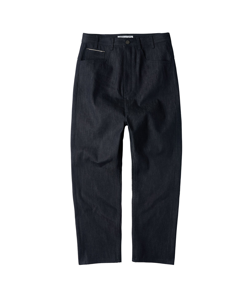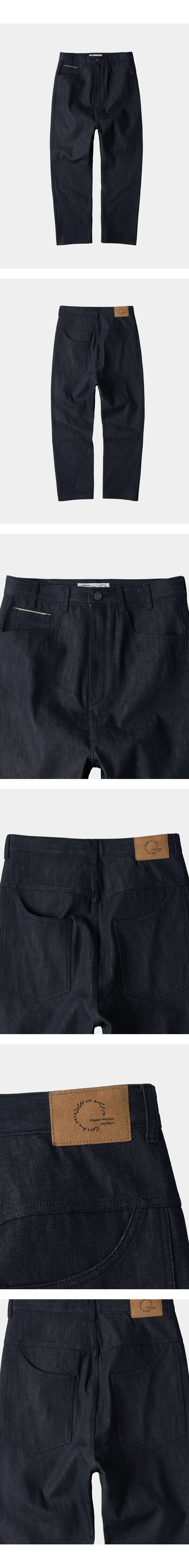 조우 네츄럴 하이웨이스트 배기 핏 셀비지 데님 팬츠 네이비