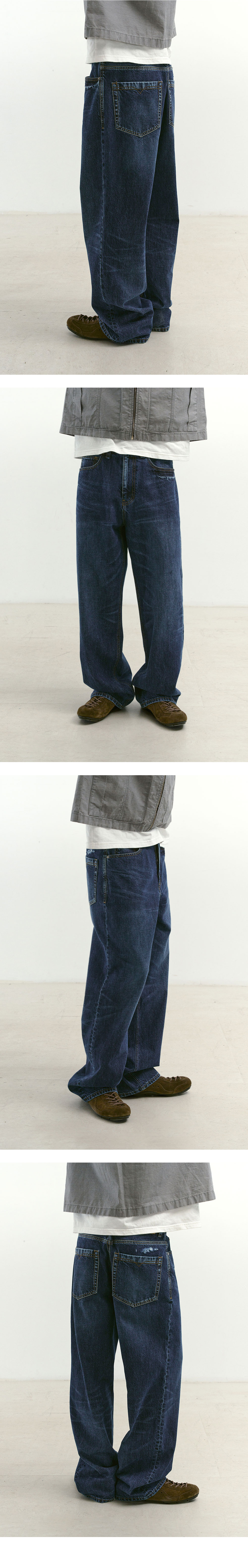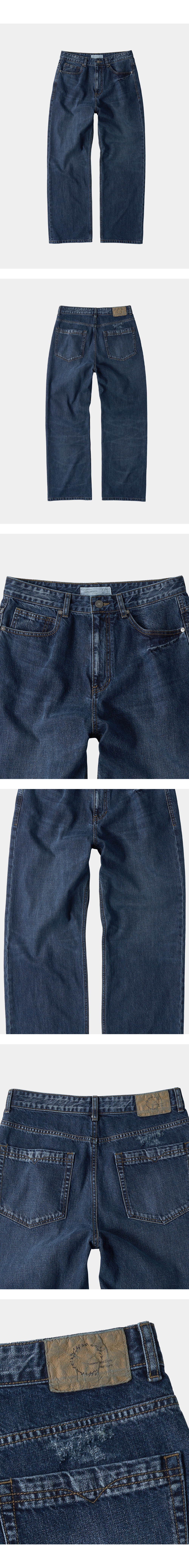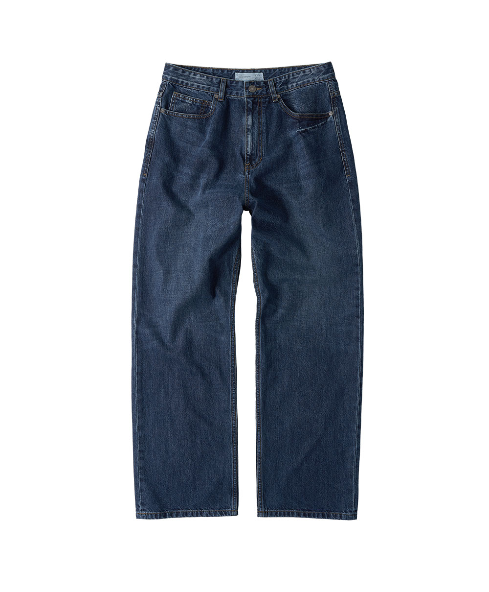 조우 루즈 스트레이트 바이커 팬츠 워시드 네이비