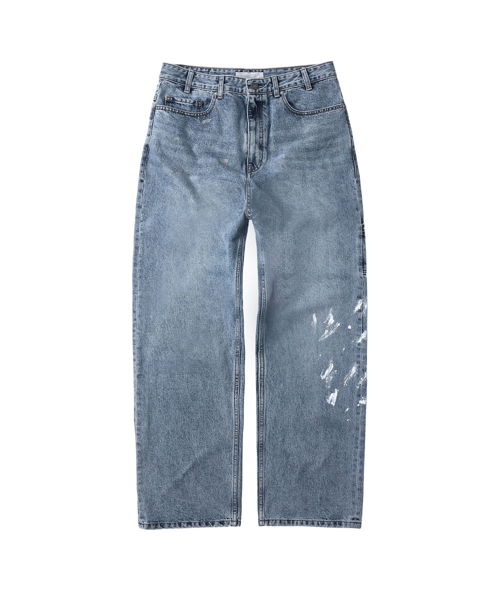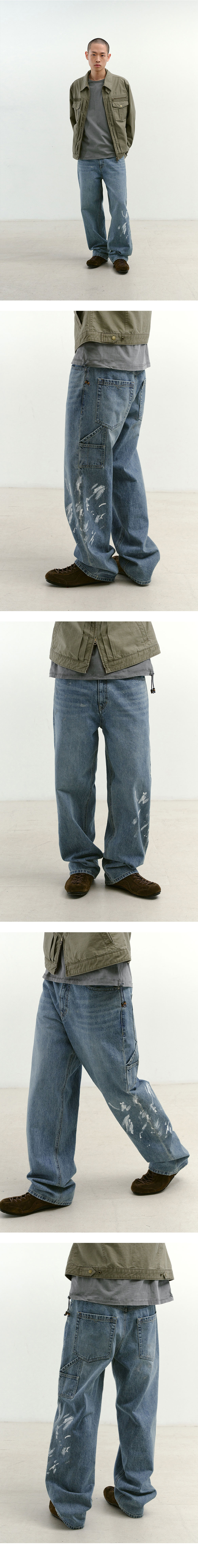 CHOWOO 에이징 스플래터 카펜터 데님 팬츠 워시드 블루