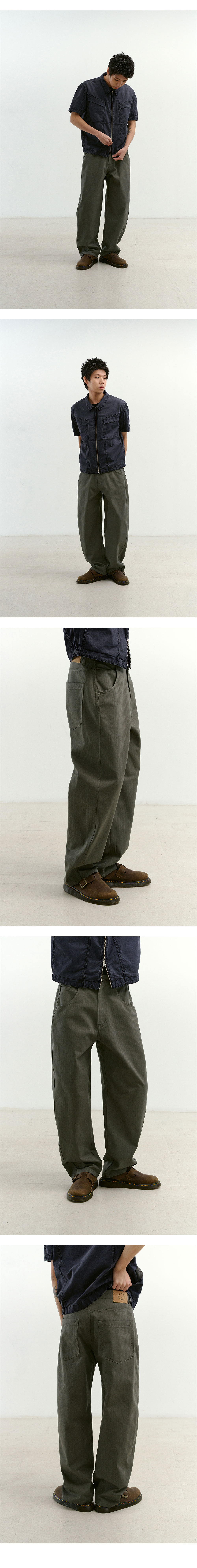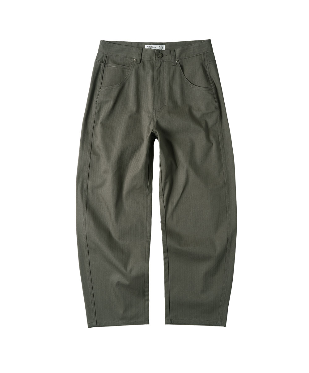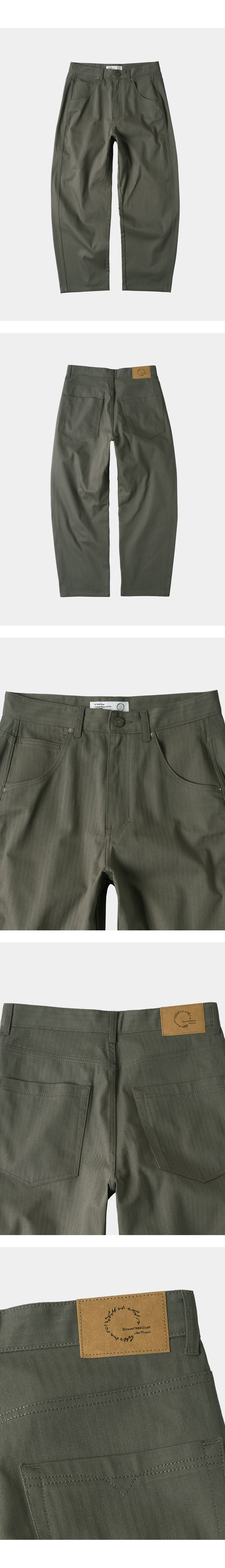 Semi Curved Herringbone Twill Pants (Khaki) 10oz 헤링본 원단을 사용해 특유의 패턴이 은은하게 드러나는 팬츠입니다. 표면에 과하지 않은 결이 살아 있어 원단의 질감이 자연스럽게 느껴집니다. 세미 커브드 핏으로 허벅지부터 밑단 단면까지 완만하게 떨어지는 실루엣을 연출합니다. 논워싱 원단 특유의 탄탄한 밀도로 착용 시 실루엣이 안정적으로 유지됩니다. SPECIFICATION - Cotton 100% - 10oz 헤링본 - 논워싱 처리 - 세미 커브드 핏 - 탄탄한 소재감 179cm, 58kg / 32size