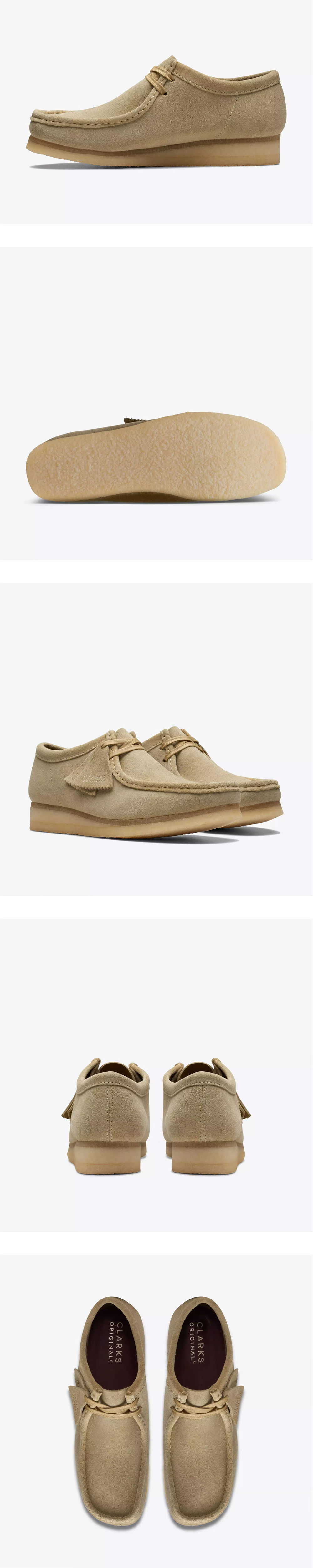 클락스 왈라비 메이플 스웨이드입니다. - 프리미엄 메이플 스웨이드 및 모카신 구조 - 경량 EVA 미드솔로 강화된 가벼운 착화감 - 클락스 시그니처 천연 고무 크레이프 솔 - 오리지널스 로고 훱 디테일