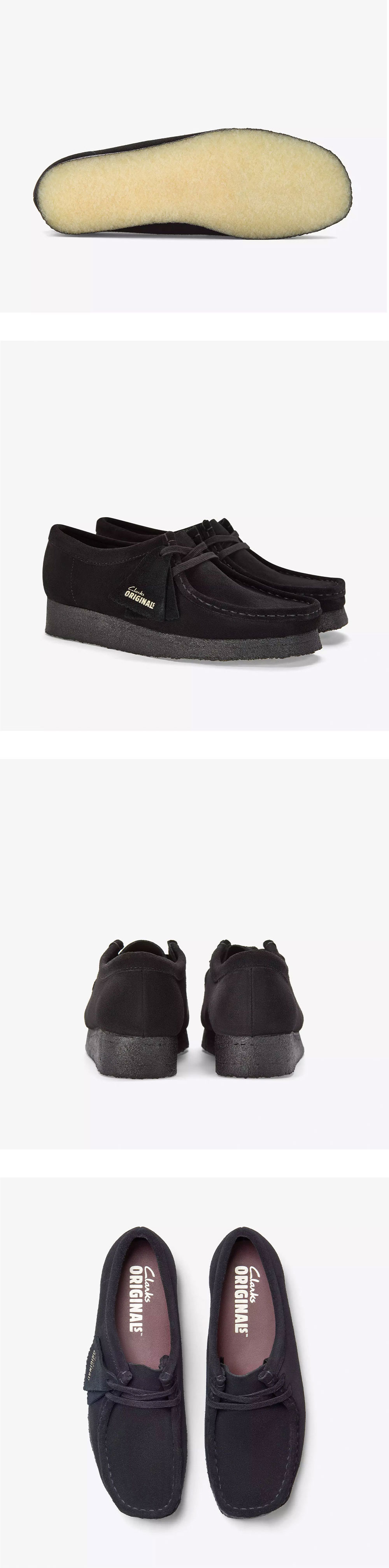 클락스 우먼 왈라비 블랙 스웨이드 입니다. - 깊이감 있는 블랙 컬러의 프리미엄 스웨이드 갑피 - 클락스 오리지널스의 상징인 천연 고무 크레이프 솔 - 발을 부드럽게 감싸주는 전통적인 모카신 구조 - 톤온톤 슈레이스와 로고 가죽 탭 디테일