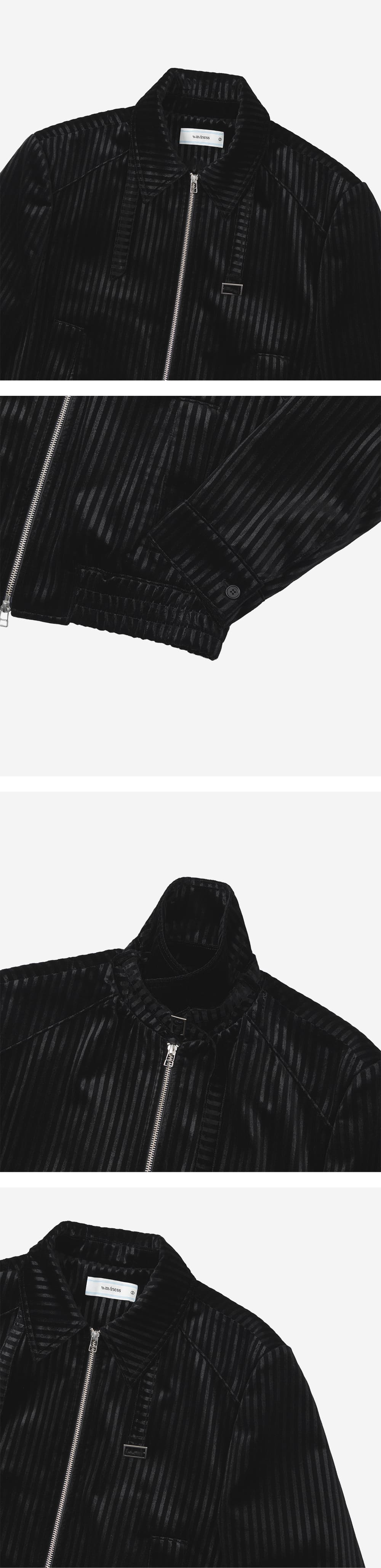 -코튼 레이온 혼방 벨벳 (블랙 스트라이프)와 영도벨벳에서 제작된 폴리 벨벳(네이비)로 각기 다른 패브릭 - YKK 2way Zipper - 소매 커프스 디테일 - 후면부 웨이비니스 시그니처 디테일 - 카라 안쪽 벨트 루프 디테일 - 어깨 패드를 통한 직선적 실루엣 - 어깨 절개 디테일 OUTSHELL : Black Stripe : Rayon 59.5% Cotton 40.5% Navy : Polyester 89.4% Polyurethane 10.6% - Color BLACK STRIPE, NAVY - SIZE 1 : 어깨 50 가슴 56 소매 65 총장 60 2 : 어깨 52 가슴 58 소매 66 총장 61 - MODEL MAN1 MODEL 189cm 78kg 2SIZE MAN2 MODEL 188cm 66kg 2SIZE