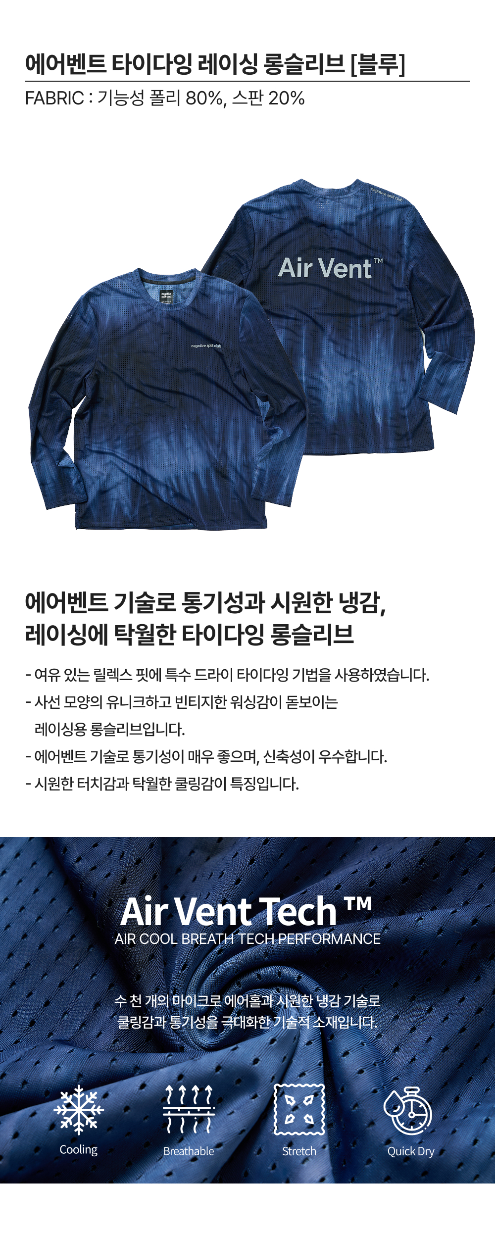 네거티브 스플릿 클럽 에어벤트 타이다잉 레이싱 롱슬리브 블루