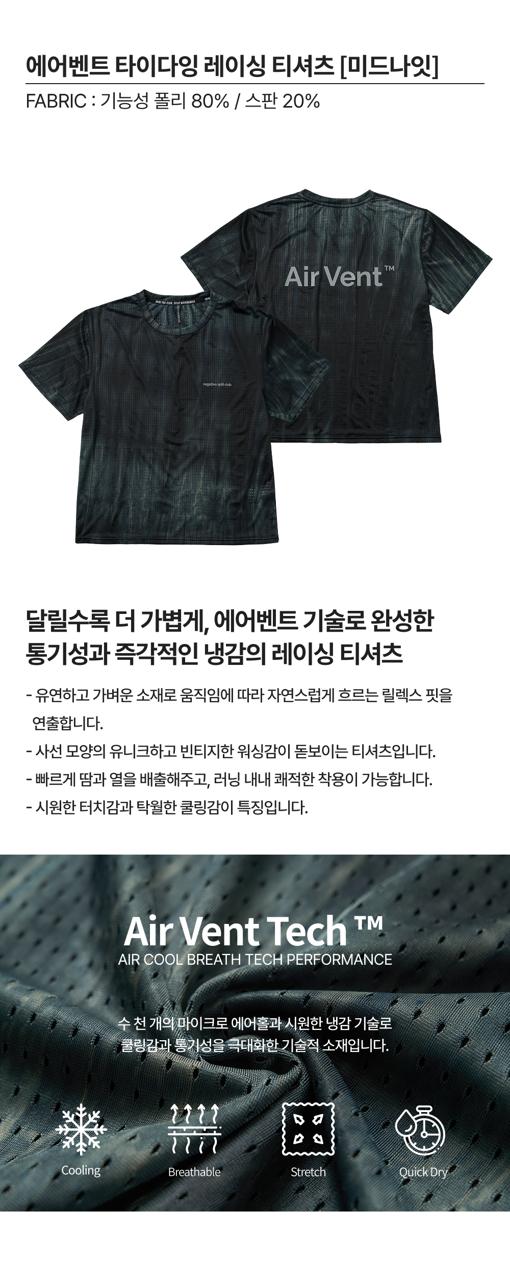 네거티브 스플릿 클럽 에어벤트 타이다잉 레이싱 티셔츠 미드나잇