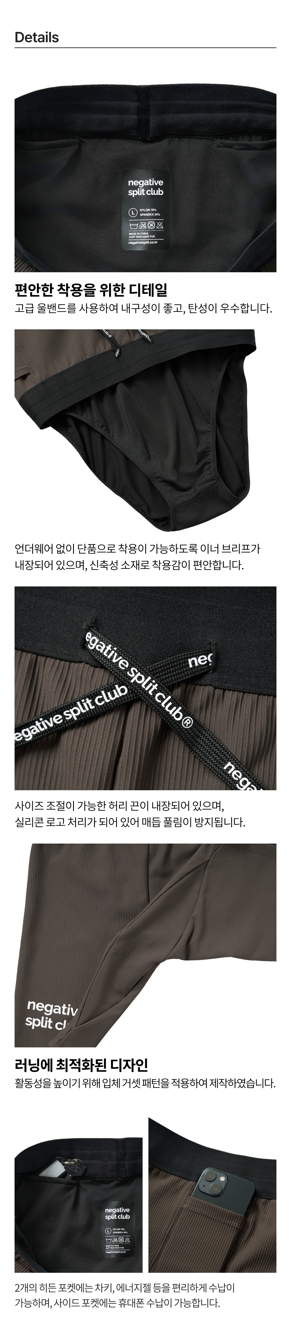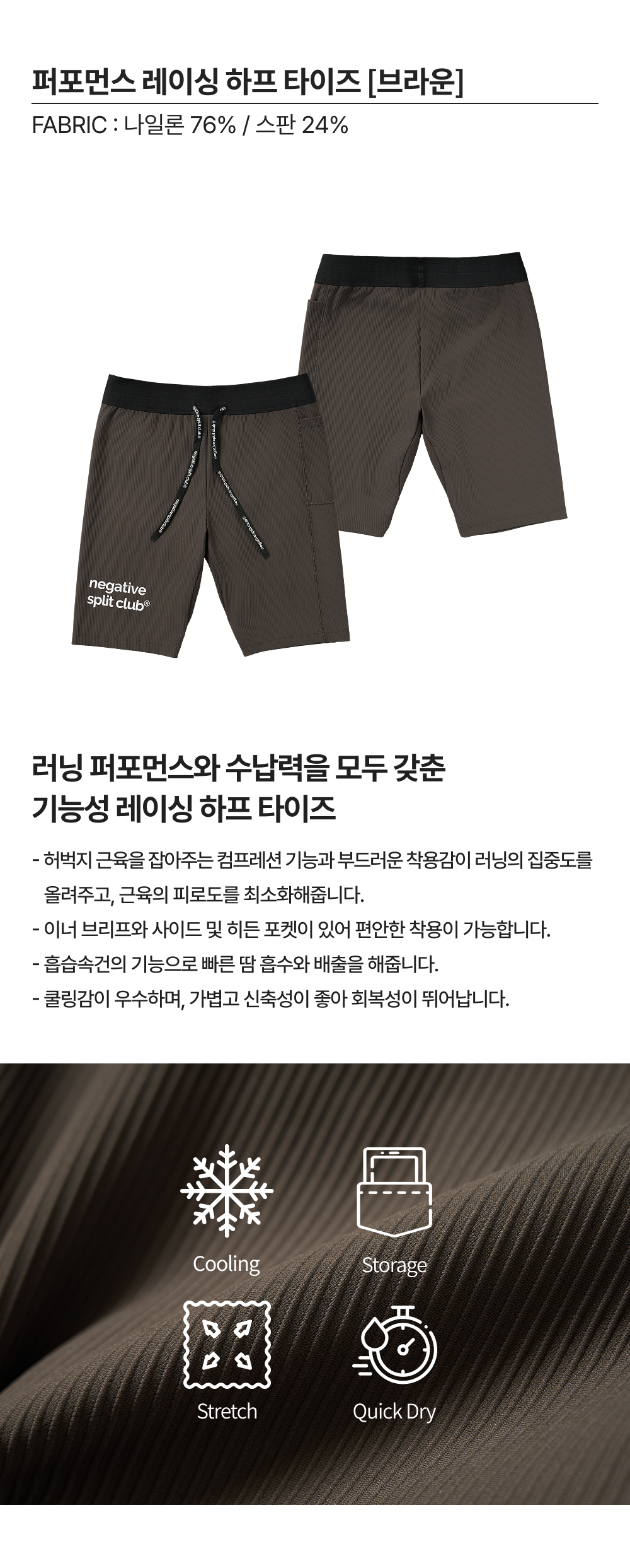 네거티브 스플릿 클럽 퍼포먼스 레이싱 하프 타이즈 브라운