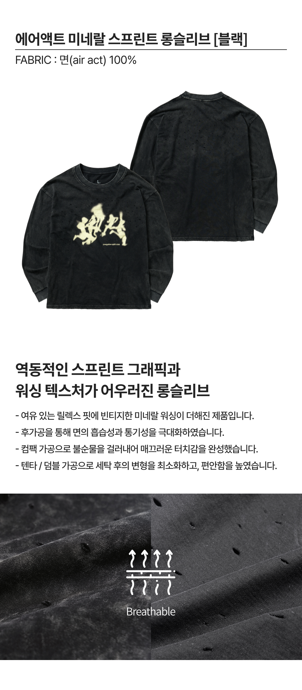 네거티브 스플릿 클럽 에어액트 미네랄 스프린트 롱슬리브 블랙
