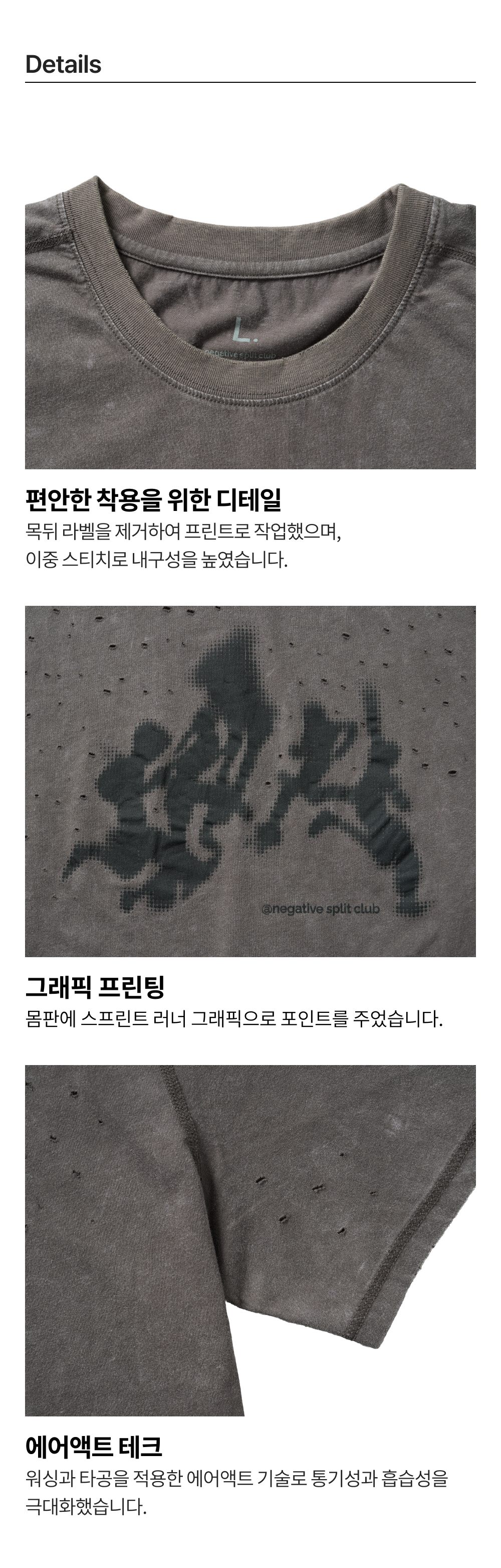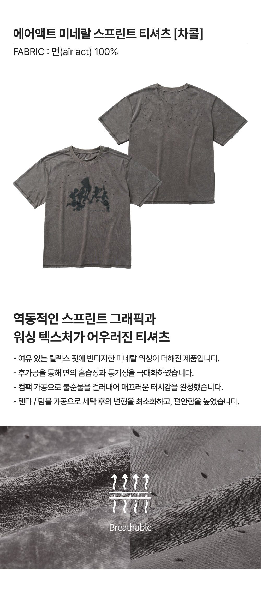 네거티브 스플릿 클럽 에어액트 미네랄 스프린트 티셔츠 차콜