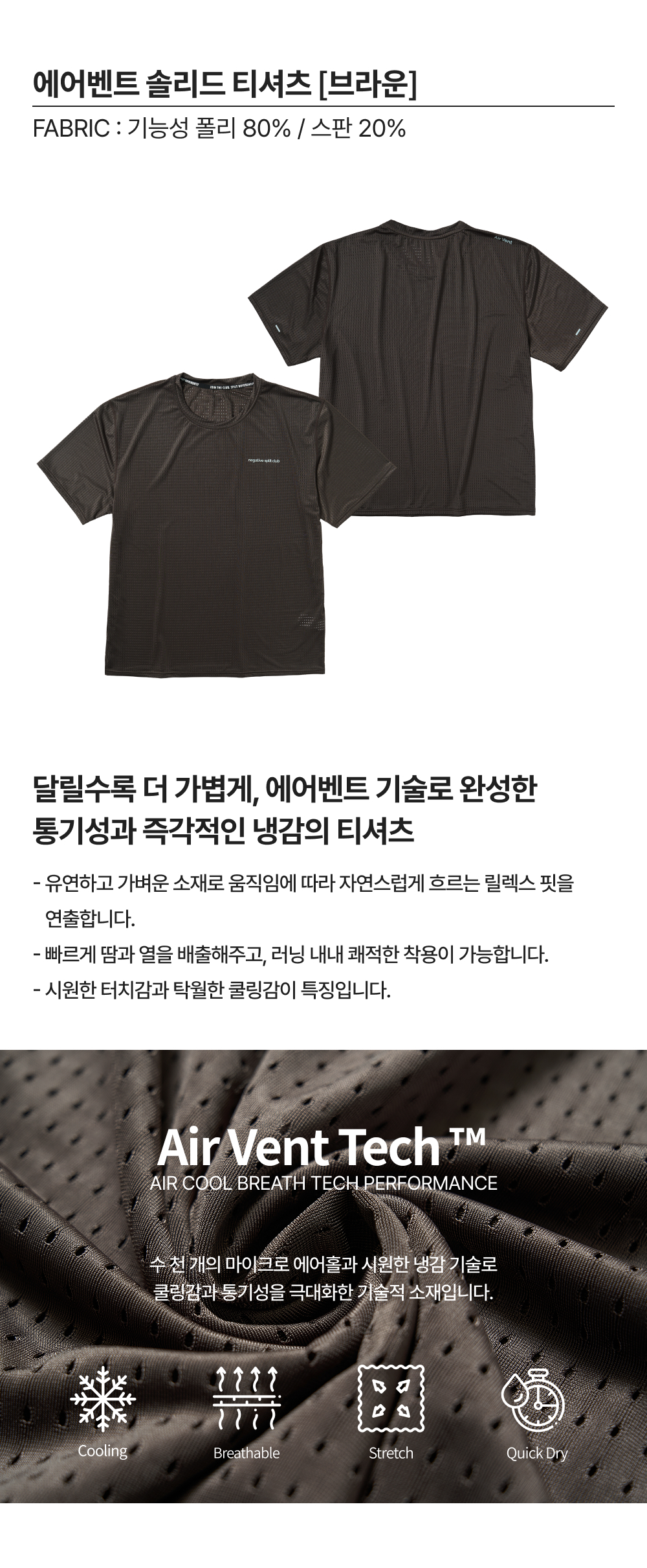 네거티브 스플릿 클럽 에어벤트 솔리드 티셔츠 브라운