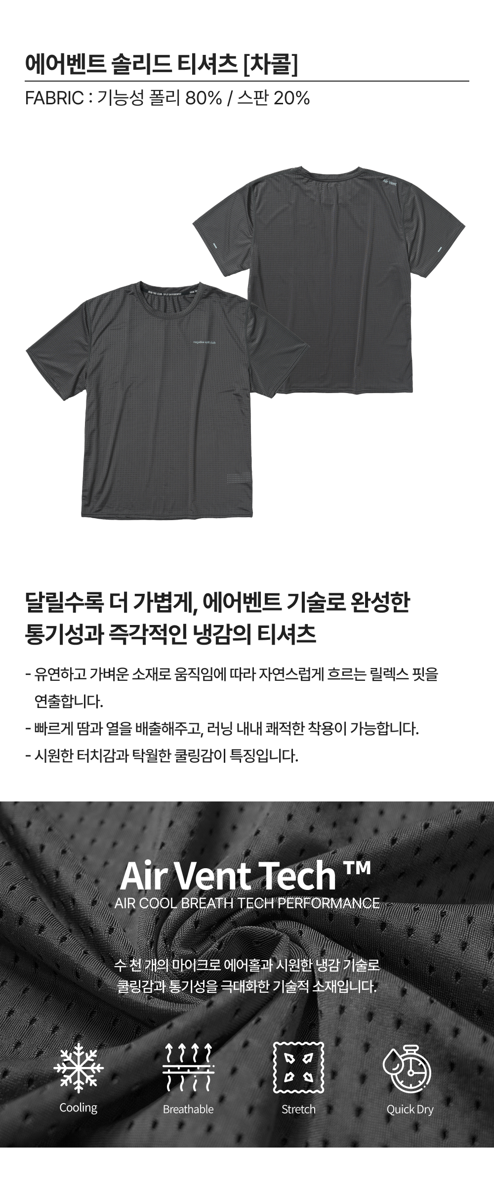 네거티브 스플릿 클럽 에어벤트 솔리드 티셔츠 차콜