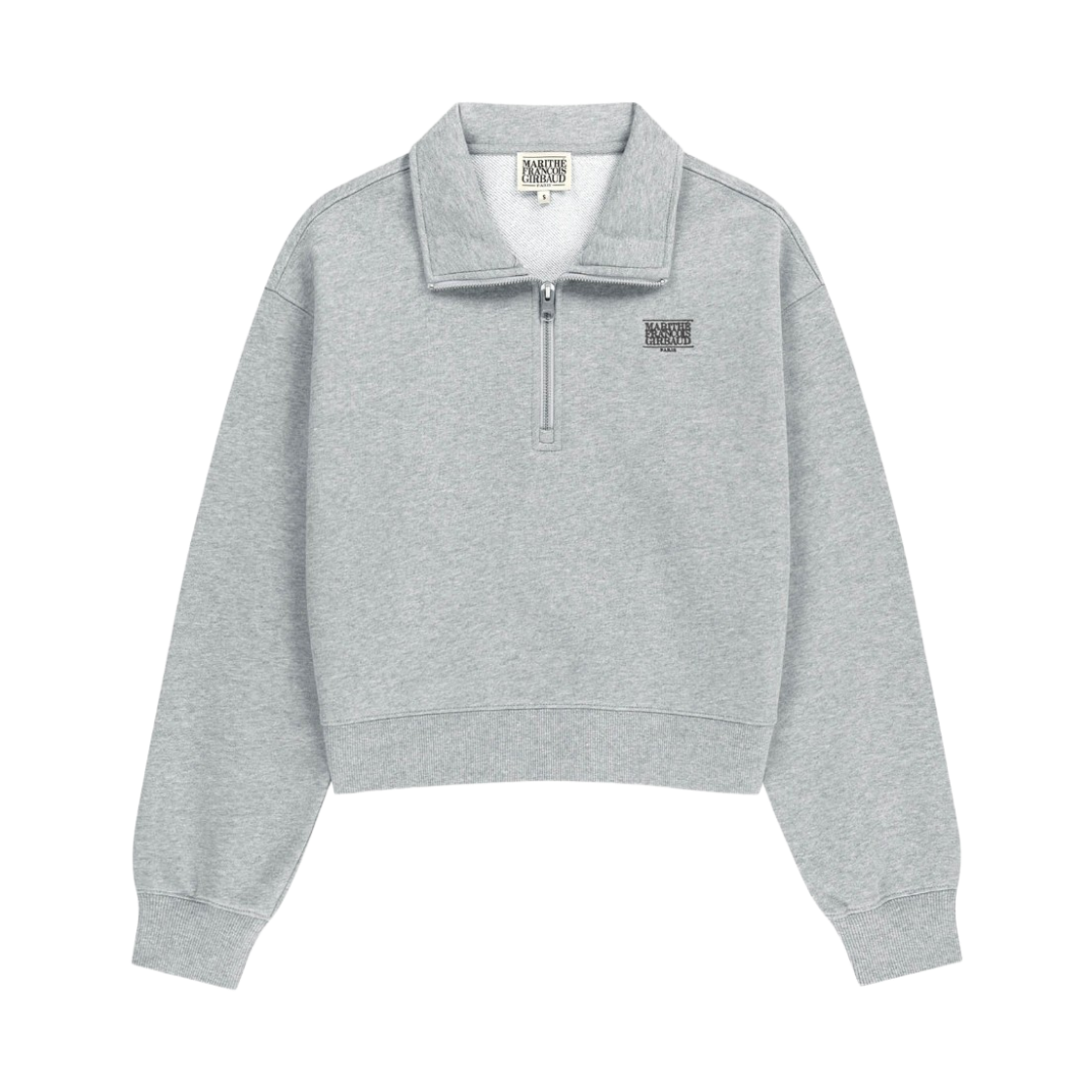 (W) 마리떼 프랑소와 저버 스몰 클래식 로고 하프 집업 크롭 스웨트셔츠 헤더 그레이