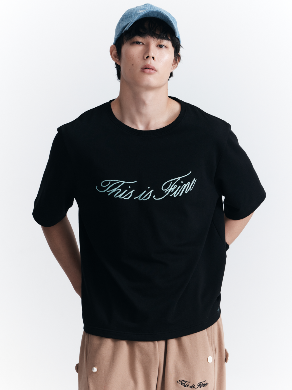 THIS IS FINE Oversized Signature Tee Black