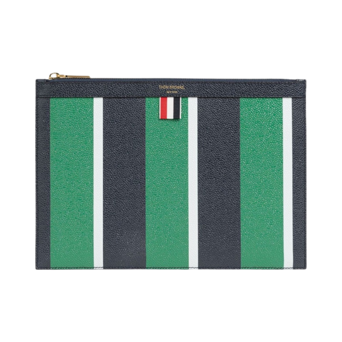 Thom Browne Stripe Pebble Grain Leather Small Document Holder Navy