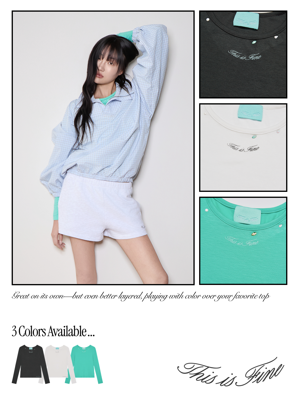 디스이즈파인 시그니처 롱슬리브 티 티프블루