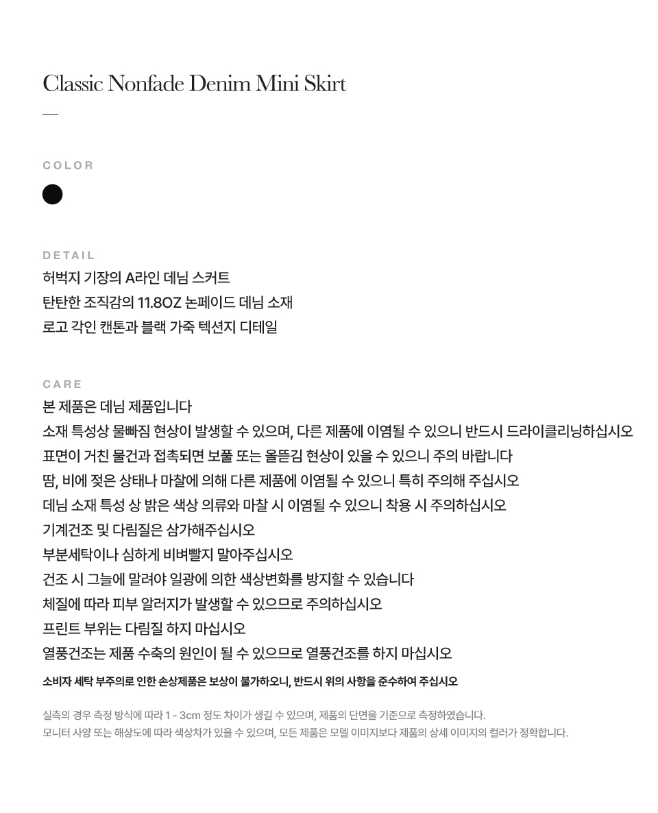 세터 우먼 클래식 논페이드 데님 미니 스커트 블랙