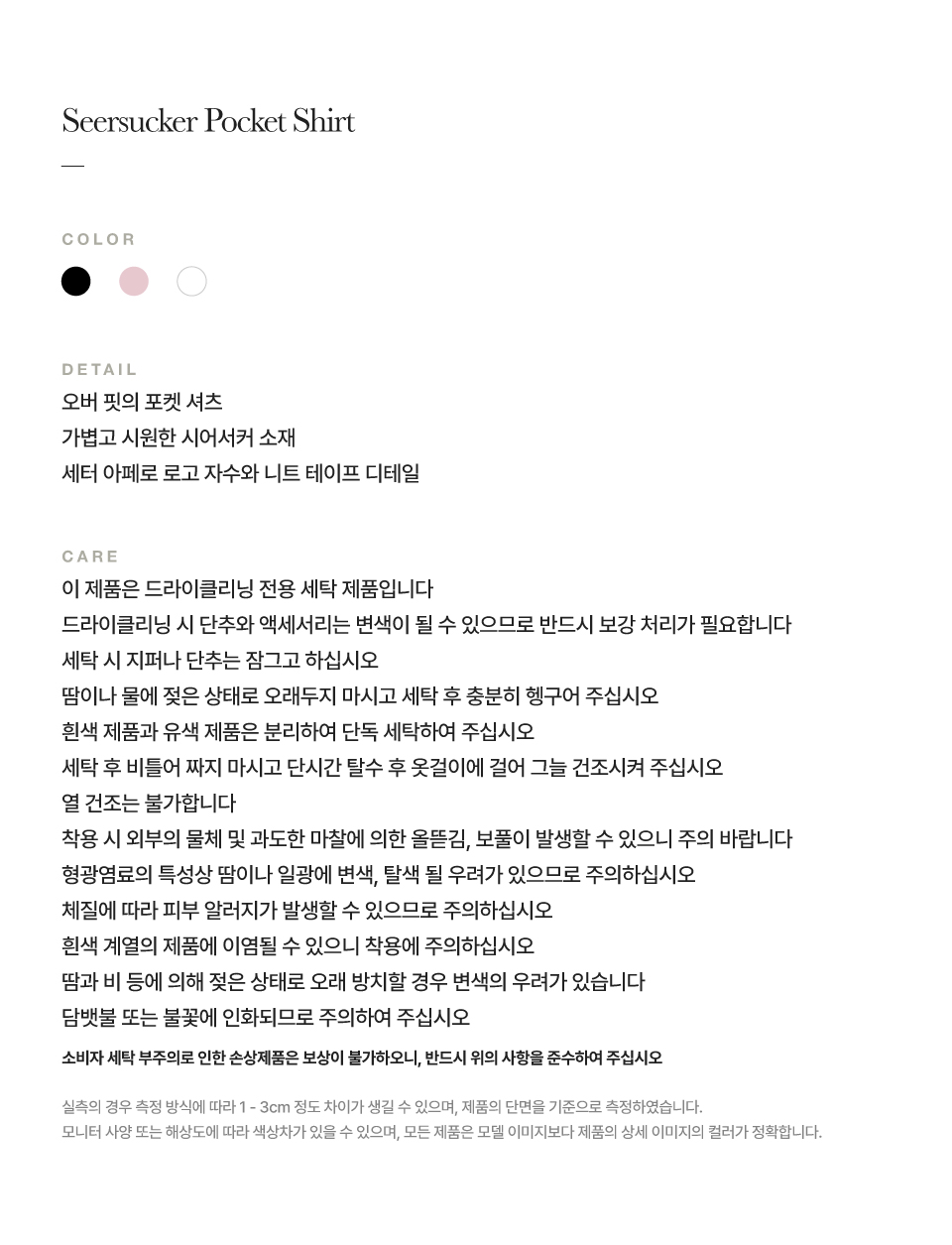 측정 방법에 따라 사이즈에 일부 오차가 있을 수 있습니다.