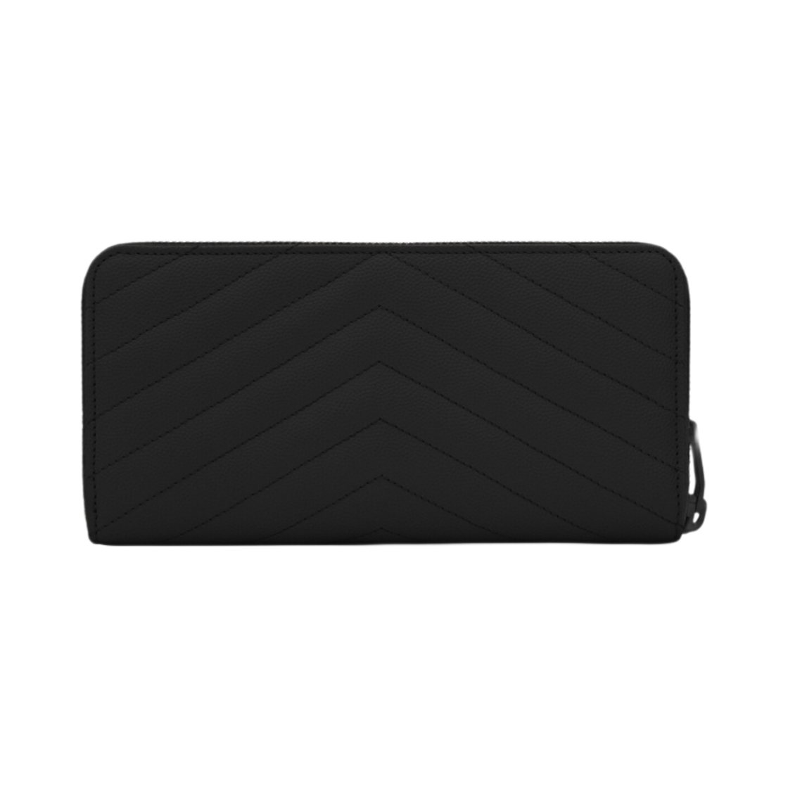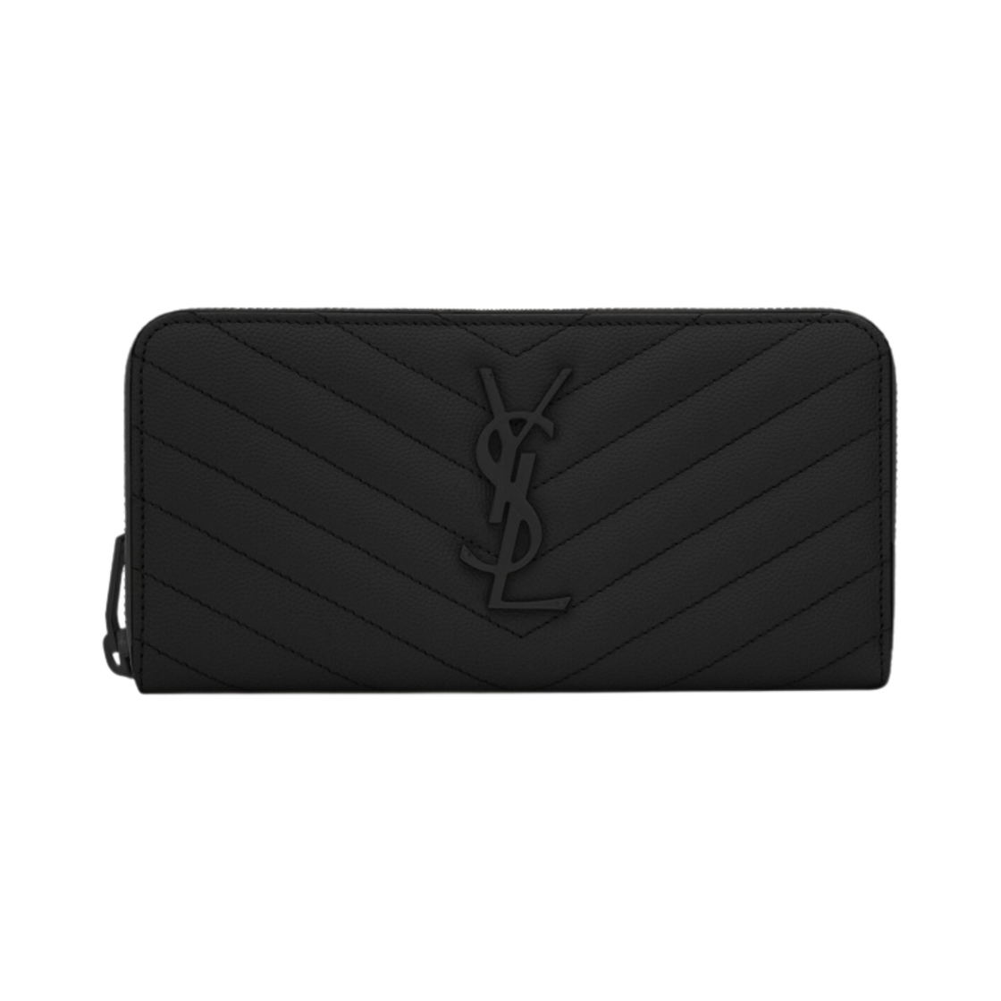 Saint Laurent Cassandre Matelasse Zip Around Wallet in Grain de Poudre Embossed Leather Black