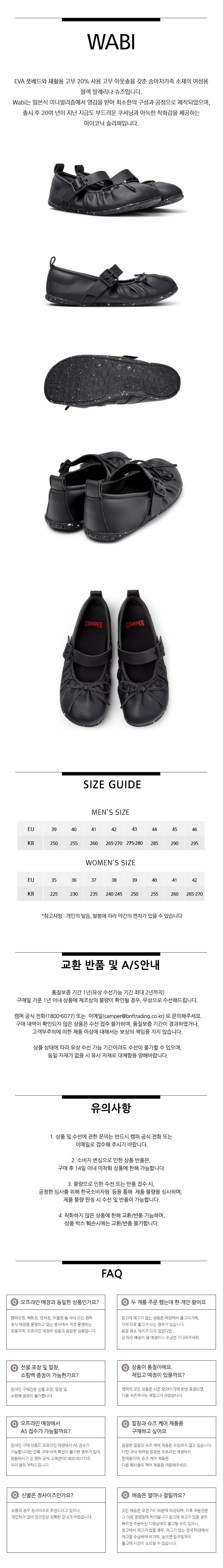 캠퍼 여성 와비 플랫슈즈 블랙
